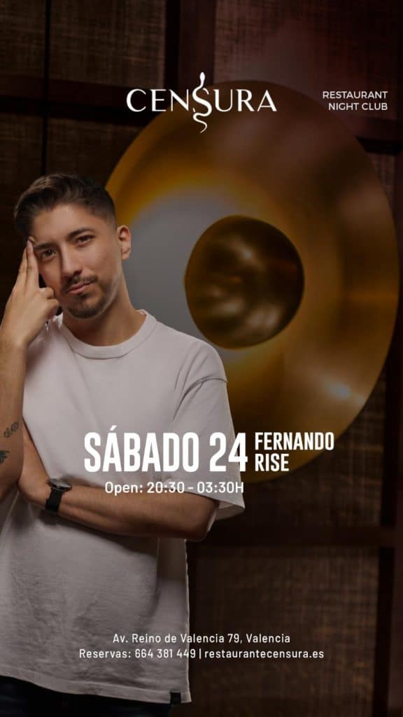El sábado es, por excelencia, el día en que Valencia se viste de gala, y en Censura Restaurante & Club tenemos la receta perfecta para que sea inolvidable. Este sábado 24 de enero, nos acompaña Fernando Rise, un DJ que ha sabido capturar la esencia de la noche valenciana más sofisticada para convertirla en una experiencia auditiva única.